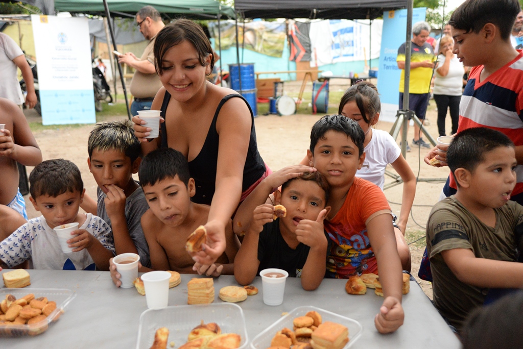 Además del titular del Ministerio, estuvieron presentes la directora de Articulación Territorial, Silvia Quiroga; el concejal por San Miguel de Tucumán, Gastón Gómez; y la encargada del merendero, María Estrada, junto a todos los chicos y chicas y sus familias.